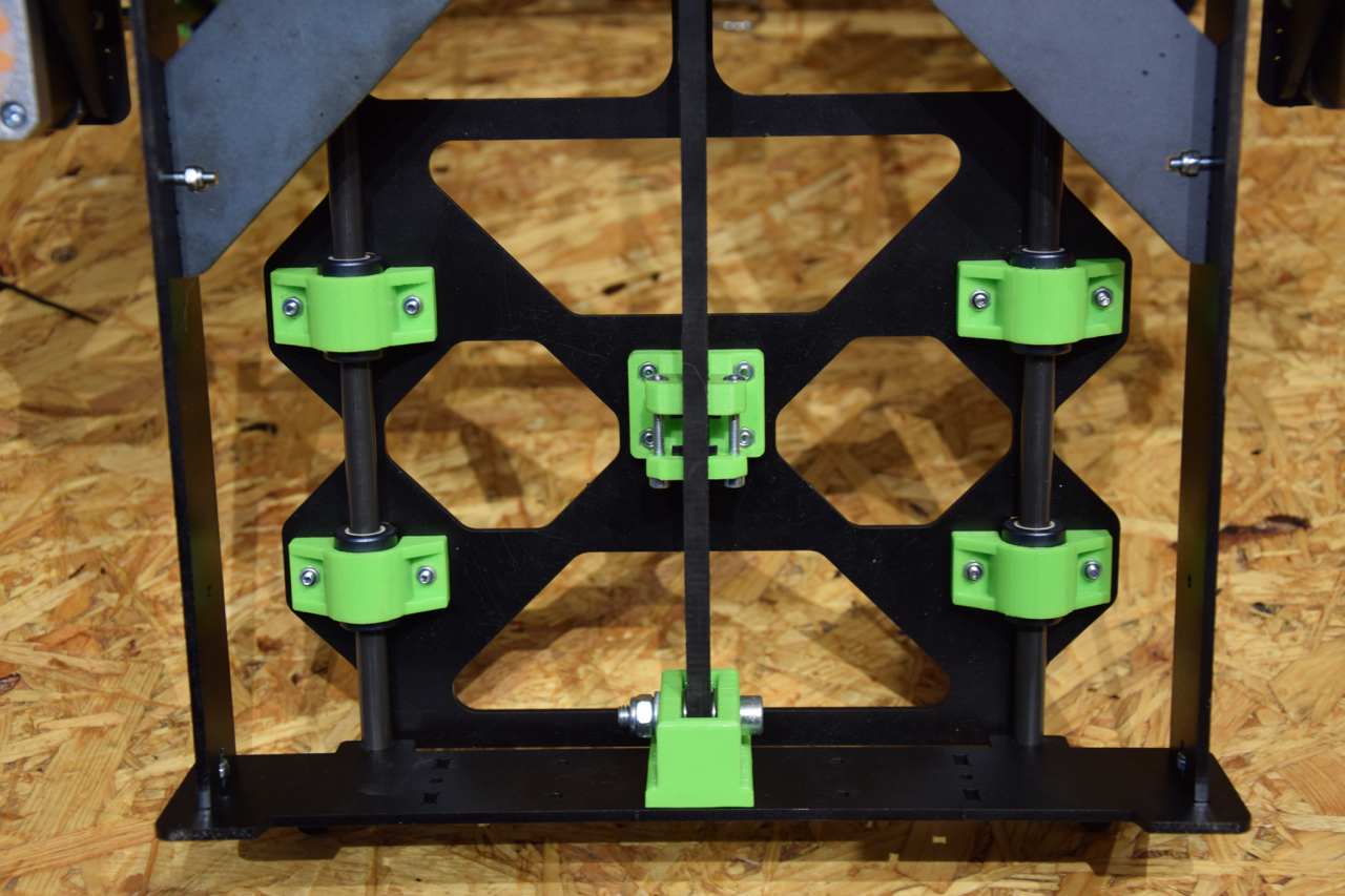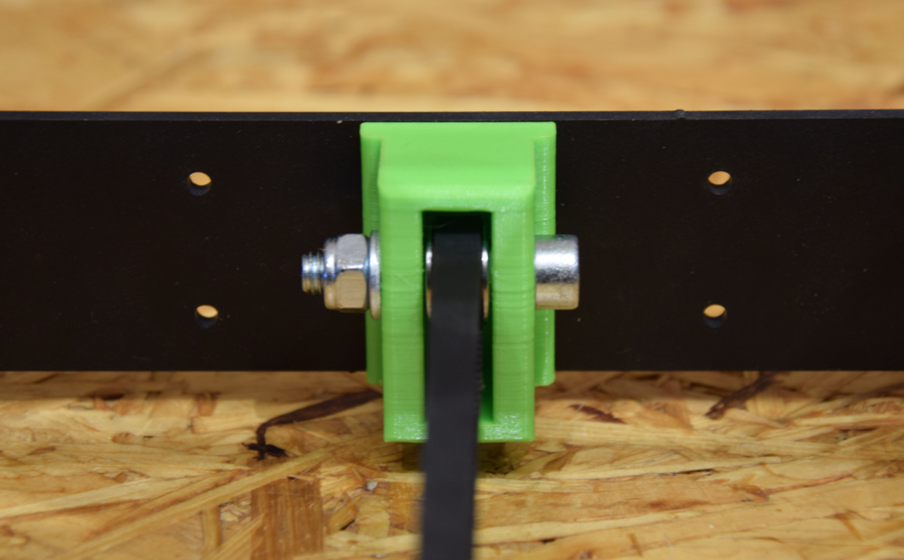 Der Durchmesser der Lager entspricht dem einer 20 Zahn GT2 Riemenscheibe. Somit läuft der Riemen exakt parallel und horizontal. Fehler in der Druckgeomtrie sind somit ausgeschlossen.